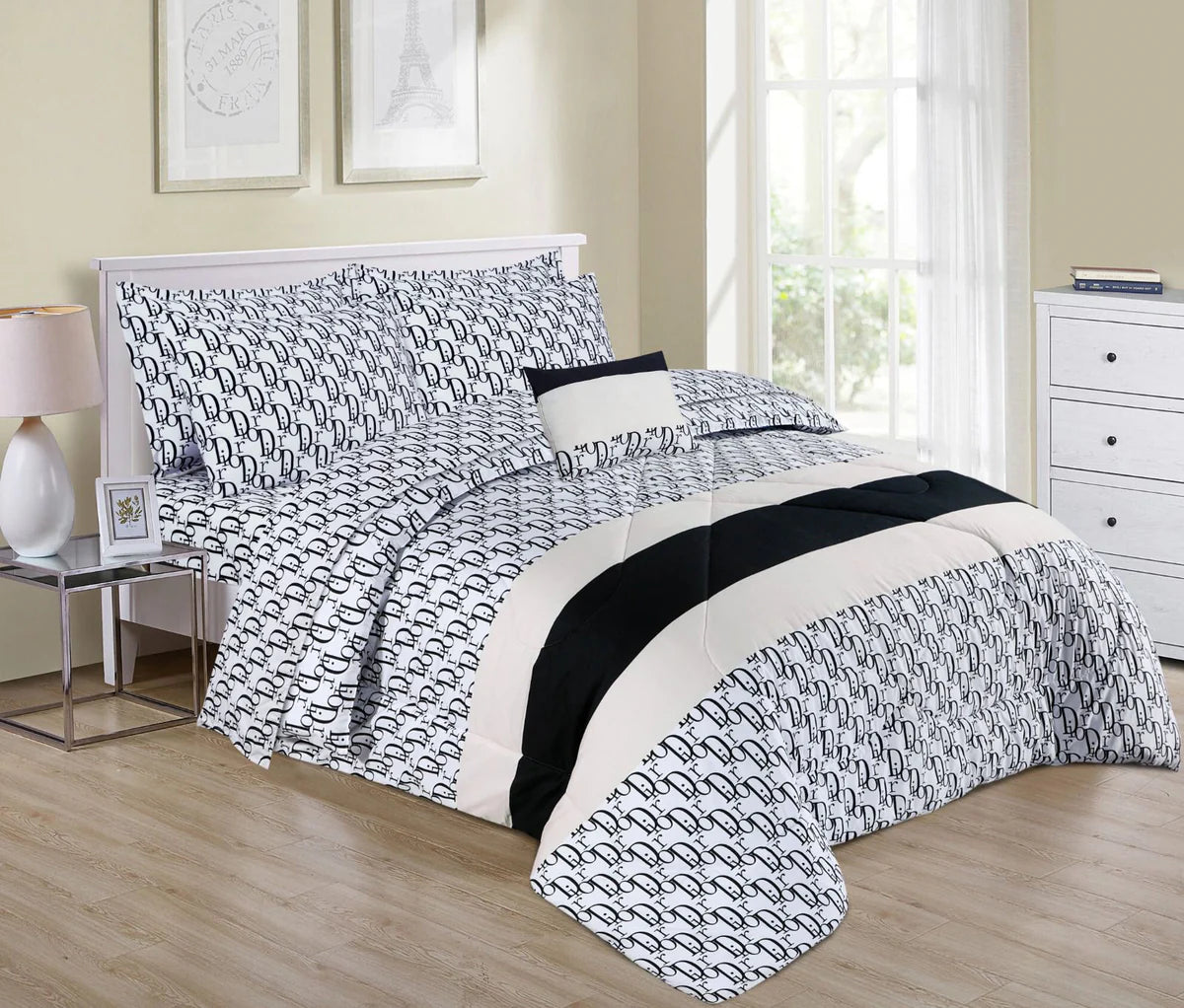 Transform your bedroom into a space of luxury and style with this Dior-inspired 3-piece bedding set. Featuring a sleek black and white color scheme with a bold monogram design, this set is perfect for fashion enthusiasts and modern home decorators.